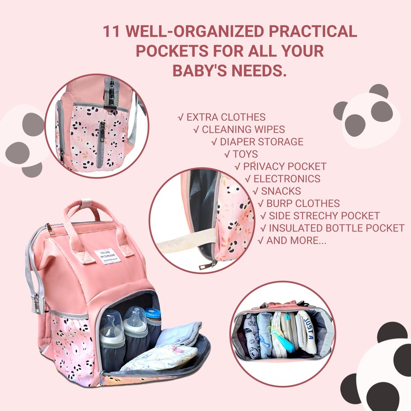 - STORAGE CAPACITY: Spacious main compartment with dedicated pockets for diapers, bottles, and personal items, plus two side compartments for quick access