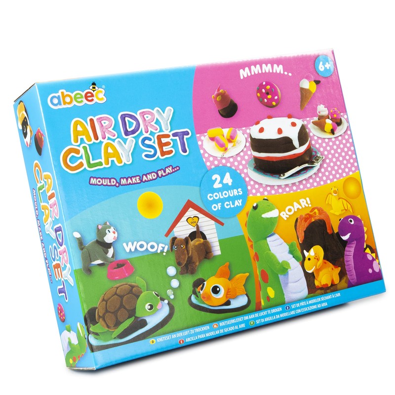 abeec Air Dry Clay Kit for Kids - 24 Colours Modelling Clay Set with Tools & Keyring Accessories - Soft Magic Clay Arts and Crafts Kit - Non-Toxic Creative Activity Set for Children Ages 5+