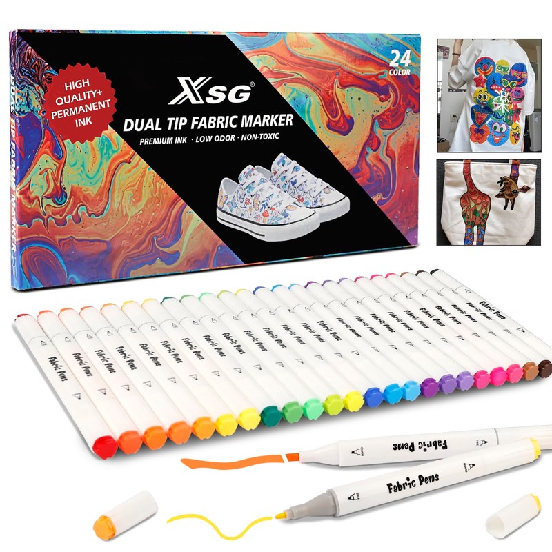 - 24 VIBRANT COLORS The fabric marker set contains 24 bright colors, including yellow, blue, red, pink, green, orange, purple, black, brown and more. 24 vibrant colours to meet most of your needs and let your creativity run wild