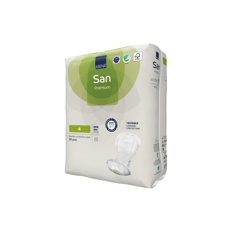 Product DescriptionProduct Description Abena San 4 Incontinence Pads Women And Men provide ultimate protection against incontinence. These anatomically shaped bladder protection pads are for light to moderate incontinence with adhesive release tape that can be stuck to regular underwear or used with ABENA Fix pants from our fixing range. These incontinence pads have Top-Dry Technology, ensuring fast absorption and a dry surface for the skin. Can also act as maternity pads after birth and sanitary towels heavy flow. ABENA incontinence pads are suitable for both women and men and can have other uses, such as sanitary pads, heavy flow, postpartum pads and panty liners. With top dry technology, these ABENA incontinence pads ensure no dampness on the skin, maintaining healthy skin. The added odour control system minimises unpleasant smells. Accredited by the Nordic Swan Ecolabel, these ABENA incontinence pads have undergone strict testing to ensure that there is limited environmental impact.Manufacturer Contact Information ABENA A/S, Egelund 35, DK-6200 Aabenraa, DenmarkDirectionsApply the pad to regular underwear or ABENA Fix pants, dispose of when full, and ensure proper skin care for maintaining healthy skin.Safety Warning[Standard cautions apply]Manufacturer Contact InformationABENA A/S, Egelund 35, DK-6200 Aabenraa, Denmark