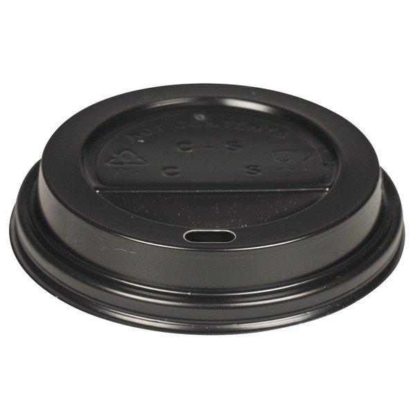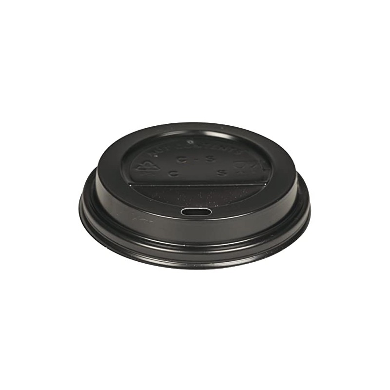 Abena Dome Sip-Through Coffee Lids: Black, Plastic PS, 3.54" (9CM) Diameter - 100 Count