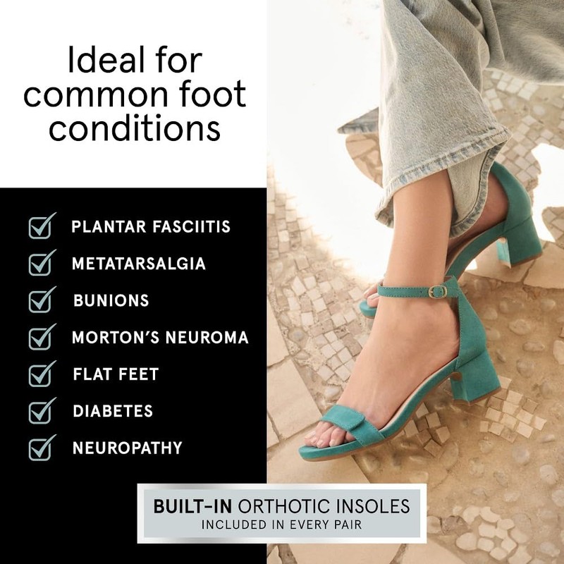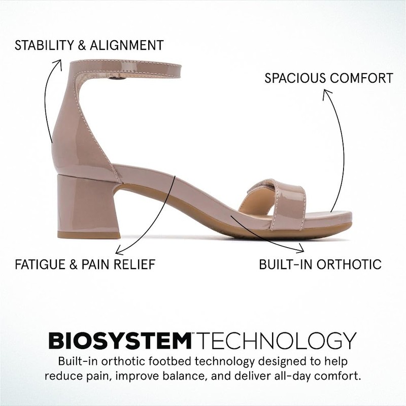 The ABEO Avenue Strap is a sophisticated pair of ankle strap heels that are easy to wear. With our BIOsystem comfort technology, these strappy heels offer arch support and responsive cushioning to provide comfort and help relieve foot pain. A chic, adjustable forefoot strap ensures a secure fit as you step into this stylish pair of 2-inch heels. Superior Arch & Heel Support - Exceptional arch support helps reduce pressure on joints by properly distributing weight and balance. Our cushioned deep heel cup helps absorb shock, preserve your natural heel pad, and properly align the body. Premium Leather or Suede Upper & Lining - Crafted with leather or suede uppers for a premium look that you can enjoy for years to come. A soft and breathable genuine leather lining helps keep feet cool and dry. BIOsystem Comfort Technology - Our exclusive BIOsystem orthotic footbed delivers a perfect balance of anatomical support, responsive cushioning and balanced alignment for exceptional all-day comfort. Heel Height: 2 inches - A stylish 2-inch heel provides additional height. Sturdy & Durable Rubber Outsole - Flexible and resistant rubber outsole offers increased traction, abrasion resistance and phenomenal sturdiness. Help Relieve Foot Pain & Fatigue Ergonomic cushioned soles soften steps to help foot and heel pain. Deep heel cup helps stabilize feet and align the body to minimize fatigue. Wider fit offers more room for wide or swollen feet. Help Alleviate Common Foot Conditions Metatarsalgia: Metatarsal footbed option has built-in metatarsal pad to help with forefoot pain.