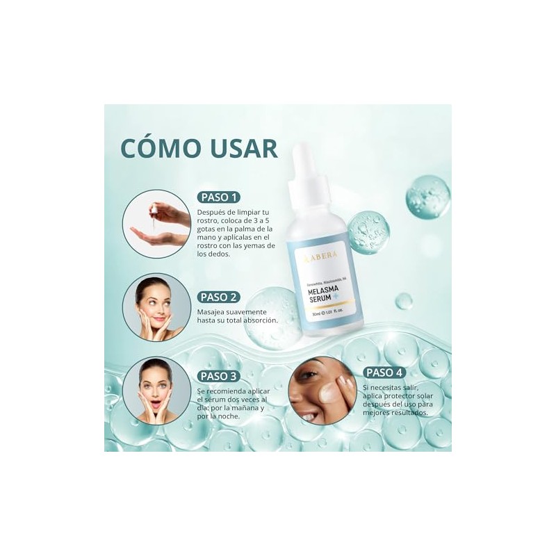 Abera Melasma Srum, Suero Facial Despigmentante, Tratamiento para Melasma y Manchas Oscuras, con Niacinamida, Genowhite y Baba de Caracol, Hidratacin