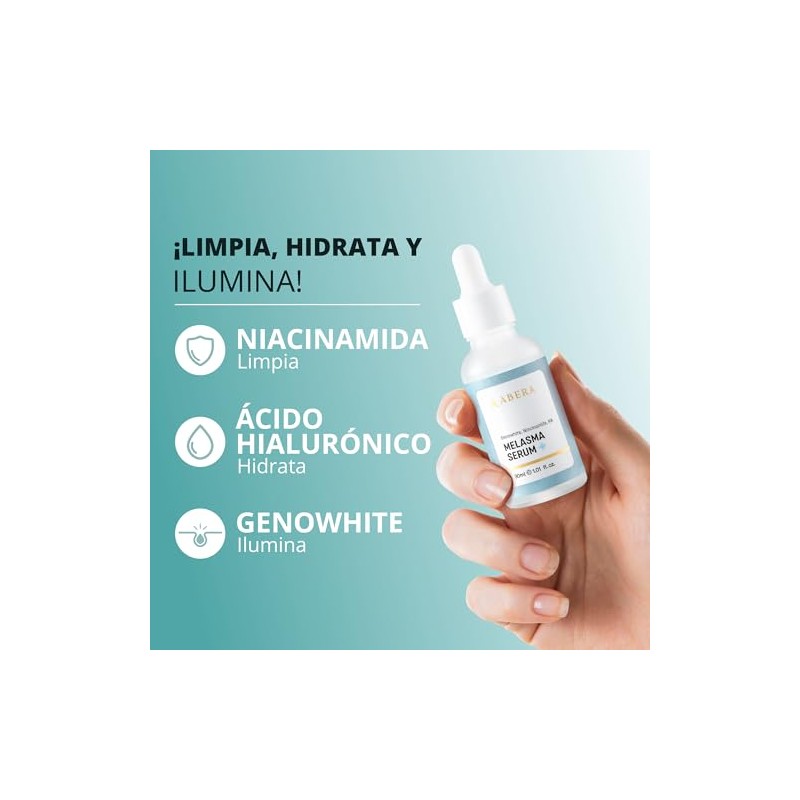 Abera Melasma Srum, Suero Facial Despigmentante, Tratamiento para Melasma y Manchas Oscuras, con Niacinamida, Genowhite y Baba de Caracol, Hidratacin