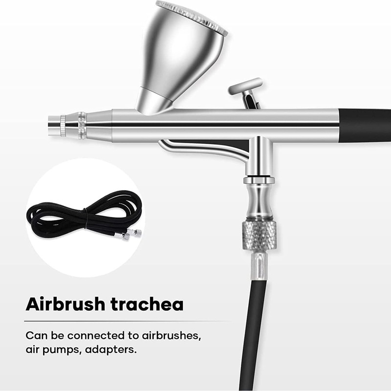 - The airbrush hose is nylon braided, both ends are G/8"- G1/8". The airbrush hose adapter is G1/8 male - G1/4 female cable.