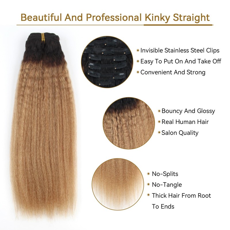 - 【Sturdy and Comfortable】ABH AMAZINGBEAUTY HAIR kinky straight hair extensions real human hair clip ins have high-quality clips, sturdy and non-rusting, more comfortable to wear, add volume, length, or highlights to your natural hair, help you change hairstyles for different occasions, such as weddings, Parties, dates, photography needs, cosplay and more.