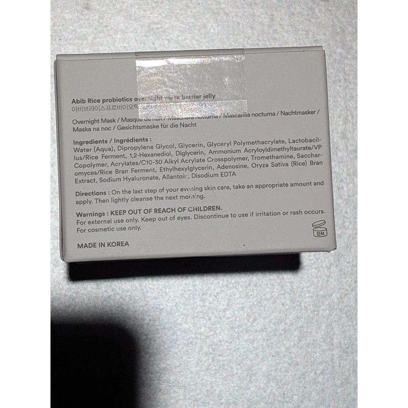 Abib Rice Probiotics Overnight Mask Barrier Jelly 2.7 oz/ 80ml Moisturizer
