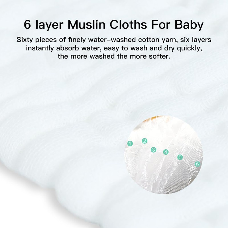 - 【Soft material】Made of pure cotton with six-layer thickening design, , reusable, very suitable for baby's delicate skin, each washing will become soft.