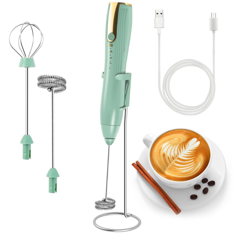 Parts List: 1 x Host 1 x Egg Beater Head 1 x Milk Electric Milk Frother Head 1 x Stand 1 x TYPE-C Charging Cable Specification: Product Name: Electric Milk Frother Color: green Material: 304 stainless steel, ABS Size: bracket 20.5x6.3cm Style: Charging Note: 1. There may be slight differences between the picture and the actual color of the commodity. We will try our best to show you the exact color. 2. Please allow slight dimension difference due to manual measurement.