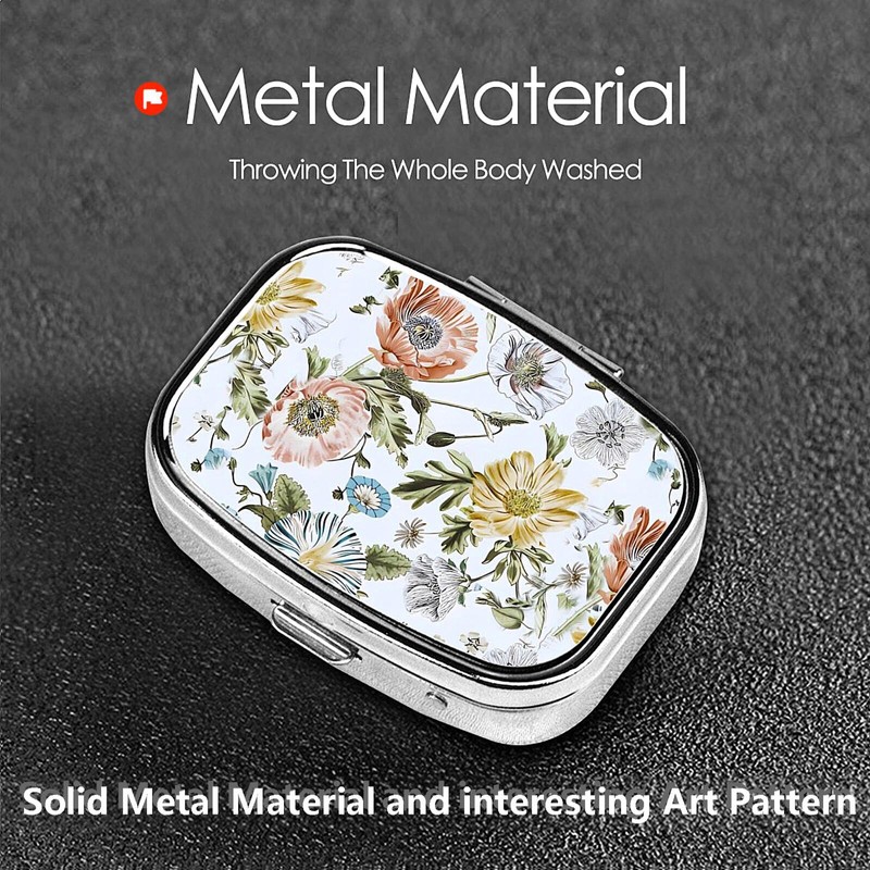 - Compact and PortableRetro cute decorative rectangular portable pill box is 2.2*1.8*0.6 inches and weighs only 1.06 ounces. It has the fit size design, takes up very little space, and can just fit in the palm of the hand. It is small, portable size makes it easy to carry in your pocket or purse, providing a convenient solution for organizing your daily medication. With 2 compartments, it helps separate your day and night doses, ensuring you take the right medication at the right time
