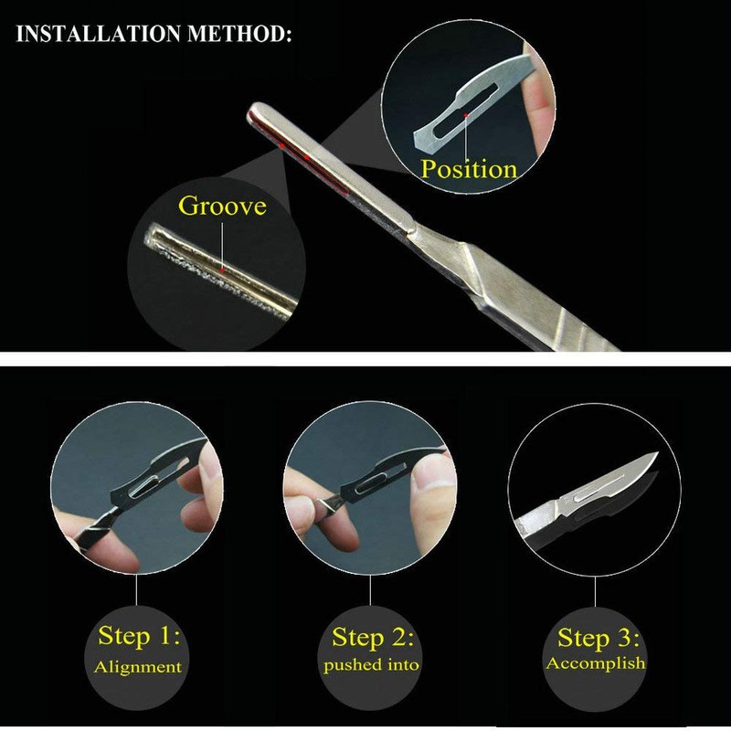 - PACKAGE INCLUDES 1 Scalpel Knife Handle No.3, 10 Sterile Carbon Steel Blades No.10