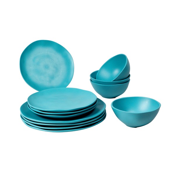 Abode Homewares Organic Coupe Wheat PolyPro 12-Piece Dinnerware Set, Azure