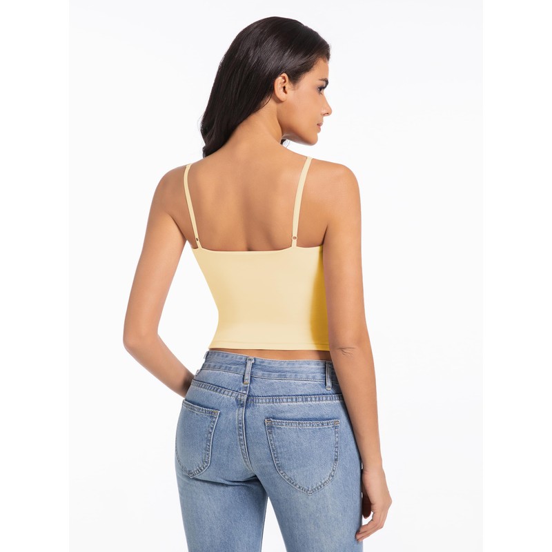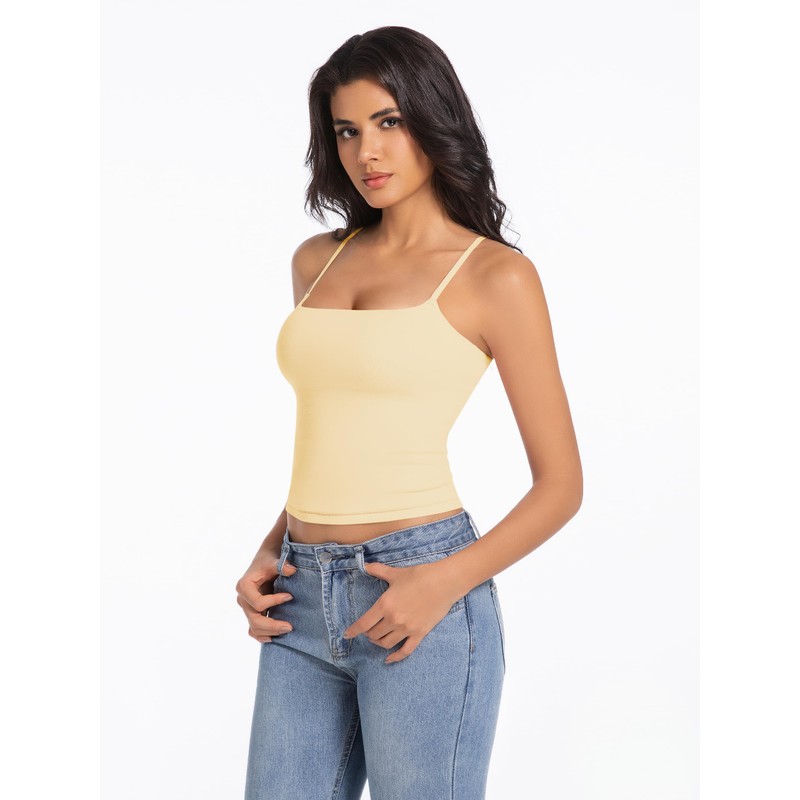 Abonlen Camisole Tops for Women Sleeveless Adjustable Spaghetti Strap Tank Tops Y2K Basic Shirts(Pale Yellow,Small)