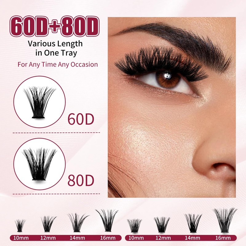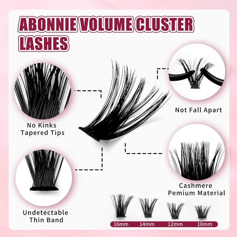 - 【Suitable to wear】ABONNIE wispy lash clusters have thin and superfine band, lightweight and soft lashes that after wearing it you can hardly feel the fluffy lash clusters and it doesn't block your vision. When you blink, the lash band won't sting your eyelid area, and it's comfortable to wear all day long and easy to use even for beginner lash users.