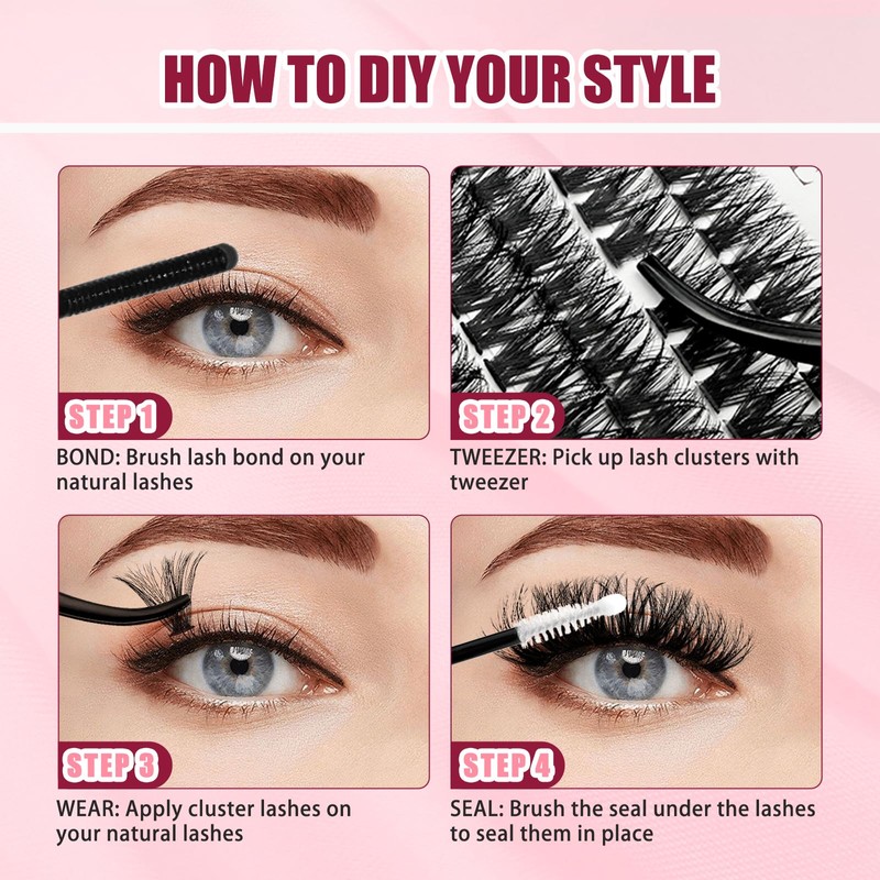 - 【DIY lash extension Kit】Buy ABONNIE diy lash kit you will get : 1 tray mix length cluster lashes, 1 lash bond and seal(2 in 1), 1 Lash remover, 1 lash applicator tweezer. This cluster lash extension kit will fulfill all your needs for diy lash at home, perfect for beginners and lash lovers!