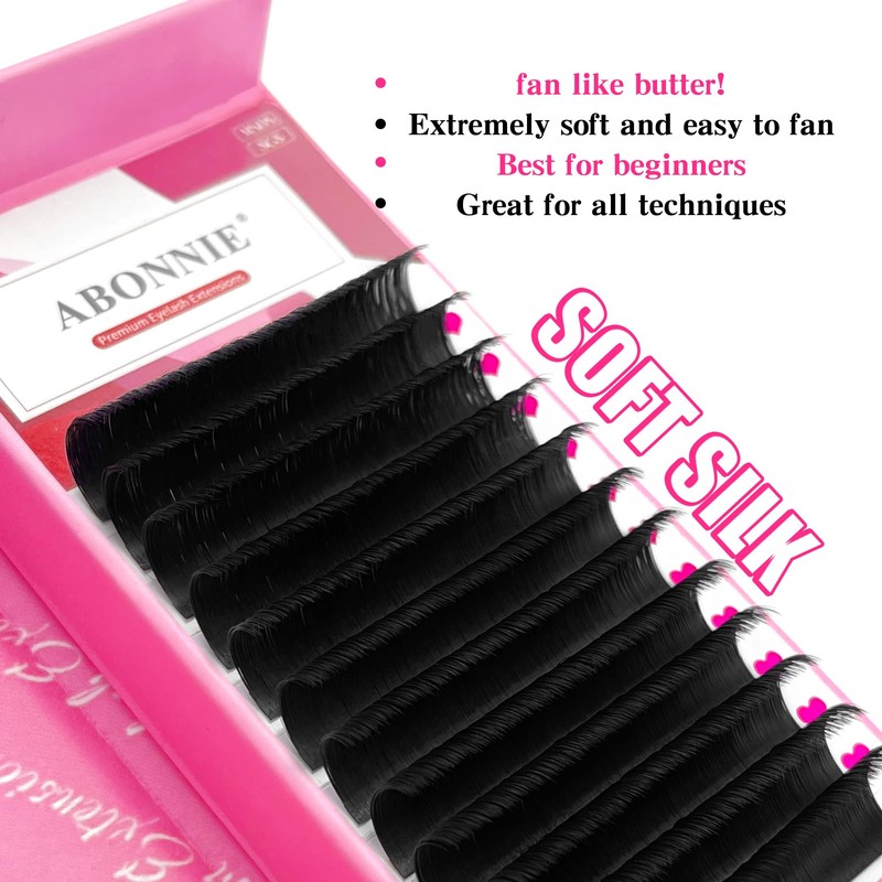 - 【Easily Fanning】ABONNIE lash extension is blossoms automatically in one second. Self fanning eyelash extensions is easier to use than single lashes.You can make the fans from 2D to Multi D easily without any professional skilled technology, even as a beginning lash artist.
