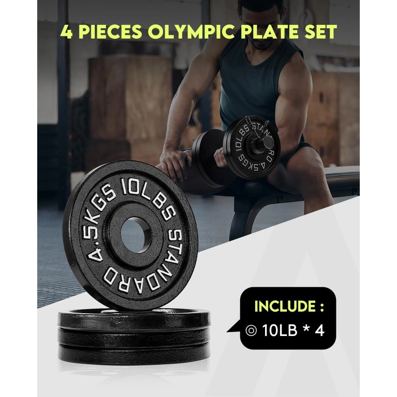 Abovegenius Cast Iron 2-Inch Olympic Weight Plates Set for Set: 40 lbs (4x 10 LB), black
