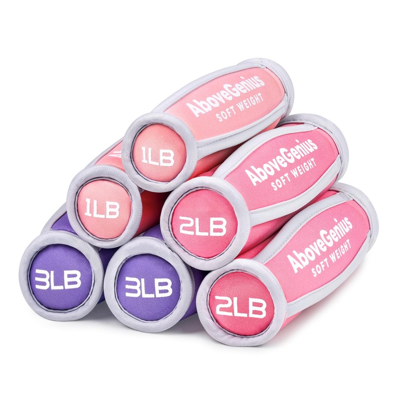 AboveGenius Hand Weights Set for Women&Men,Soft Dumbbells Set of 6(1lb 2lb 3lb Each Pack) for Dumbbell Walking Weight Sets with Hand Strap for Workout Running, Jogging and Physical Therapy