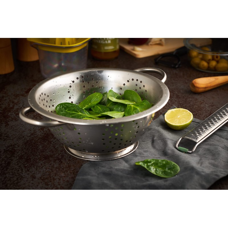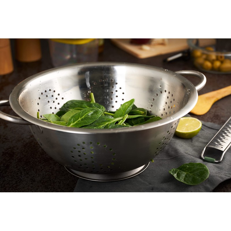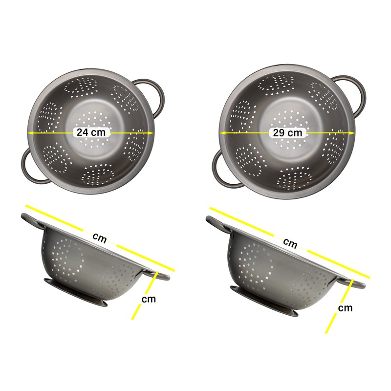 - Stainless Steel Collander 24cm, Made of High Quality Rust-Proof Stainless Steel to Effortlessly Strains and Rinses, with Beautiful Mirror Polished Interior Finish. Perfect Sized Draining Hole to Quickly Drain Vegetables, Salad, Fruits, Pasta, and even Meat, while still Maintaining Safety