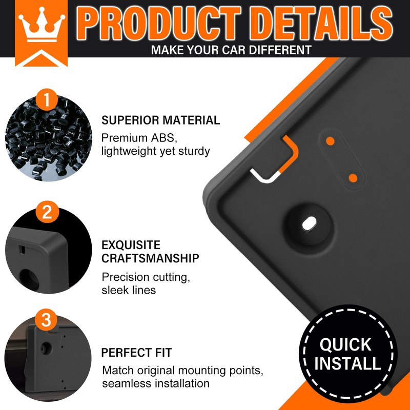 - HIGH-QUALITY ABS MATERIAL: Made from durable, high-density ABS, this license plate holder resists scratches, fading, and warping. Lightweight yet tough, it withstands harsh weather and daily wear while maintaining its sleek appearance. Ideal for long-term protection on any adventure.