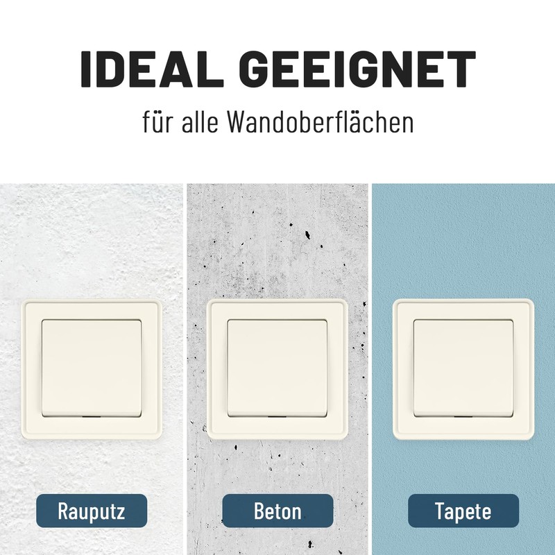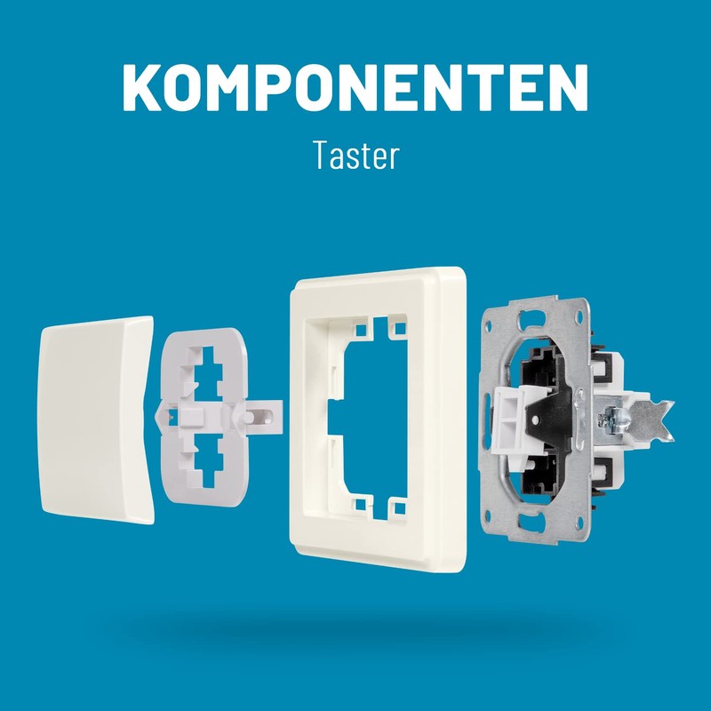- Box contents: 6 x flush-mounted buttons in white / durable box with smooth and easy to clean surface / 250 V AC / 10 A / IP20