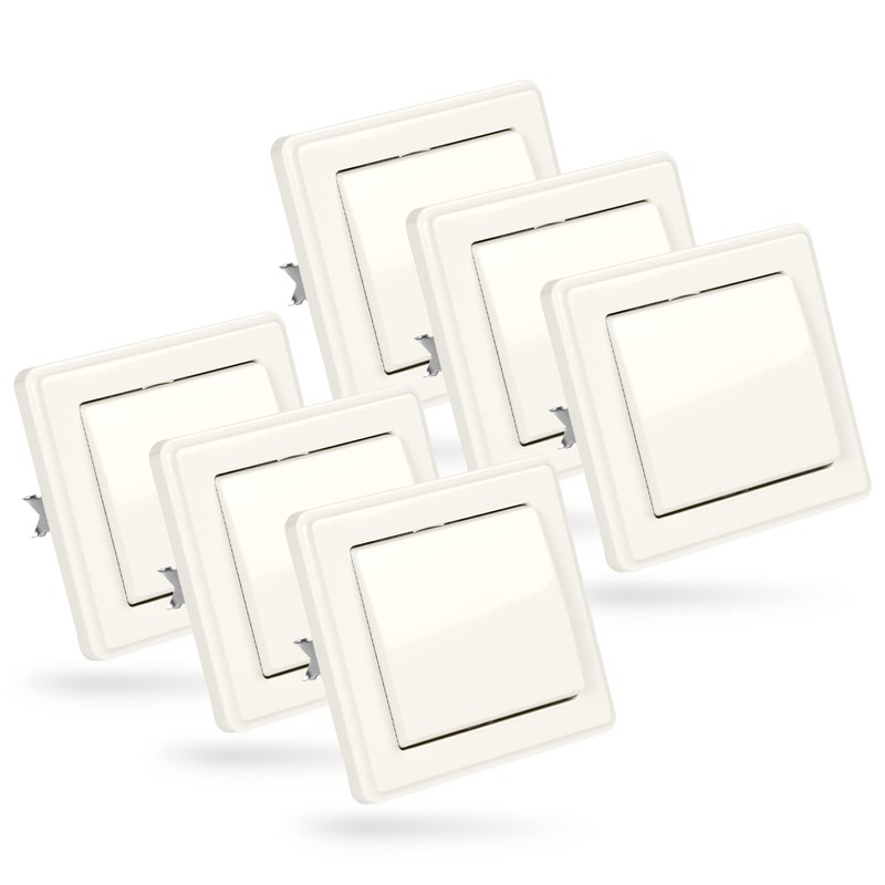 ABSINA 6 x Flush-Mounted Push Button Light Switch 250 V AC, 10 A, IP20 Including Frame, Flush-Mounted Insert & Cover, Light Switch, Flush-Mounted Button, Push Button Switch, Flush-Mounted Switch