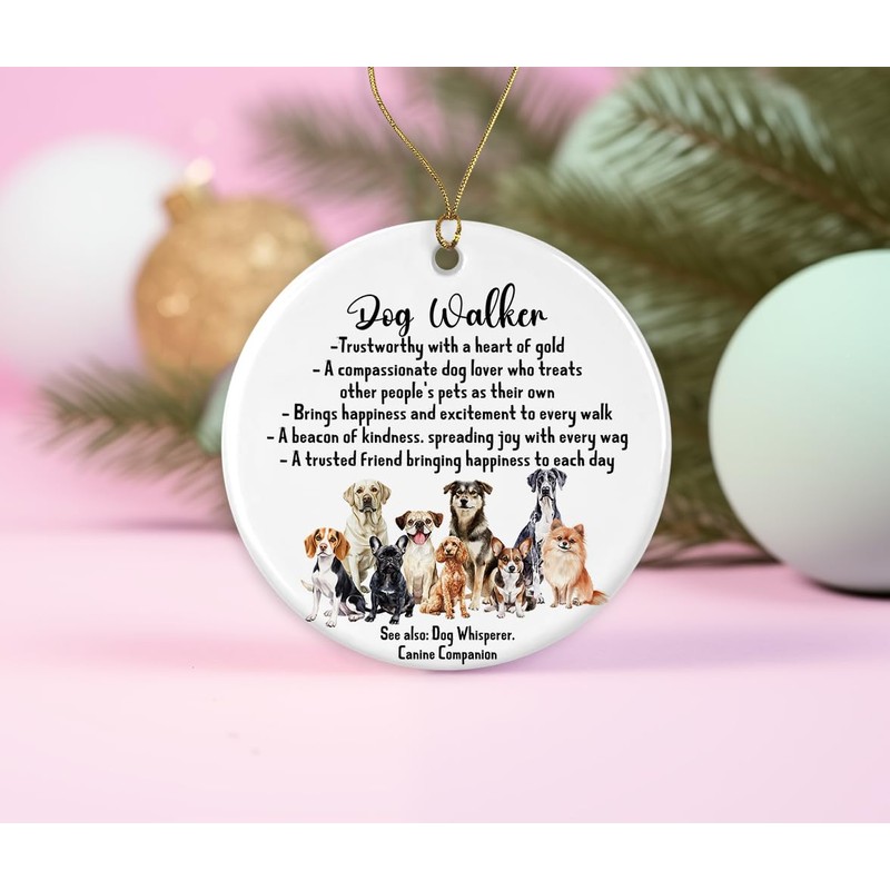 ABSMDesigns Dog Walker Ornament - Definition Ornament - Pet Lovers Keepsake - Xmas Ceramic Ornament - Christmas Dog Lovers Ornament Printed on Both Sides