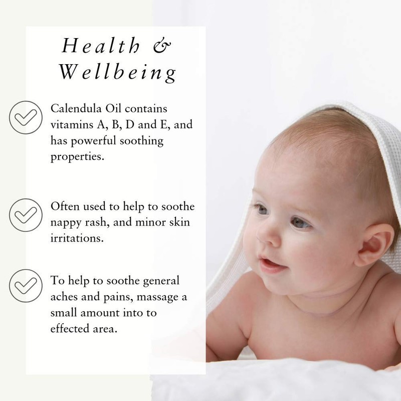 - CARRIER OIL INFUSION – Calendula Oil is an infusion of the marigold flower in Sesame Oil, which produces a gentle, soothing oil. Can be used for face, hair & body.