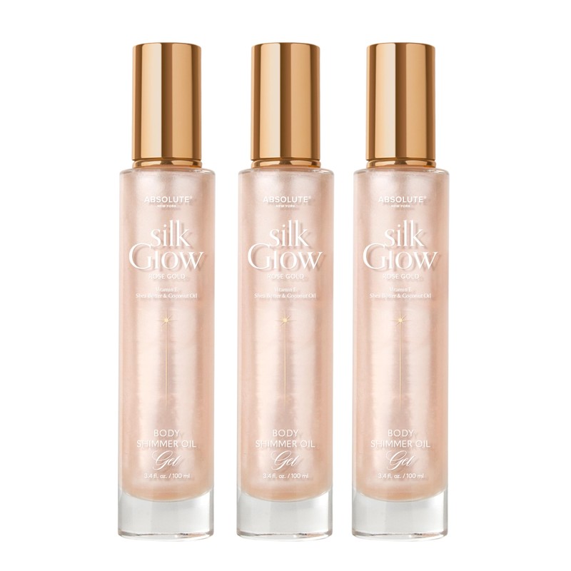 Absolute New York - Silk Glow Shimmer Mist Glow, Radiant, Shimmer Body & Face & Hair, Shea Butter, Coconut Oil, Vitamin E (SBGS04 Rose Gold Oil Gel (Set of 3), 3.4 fl oz)