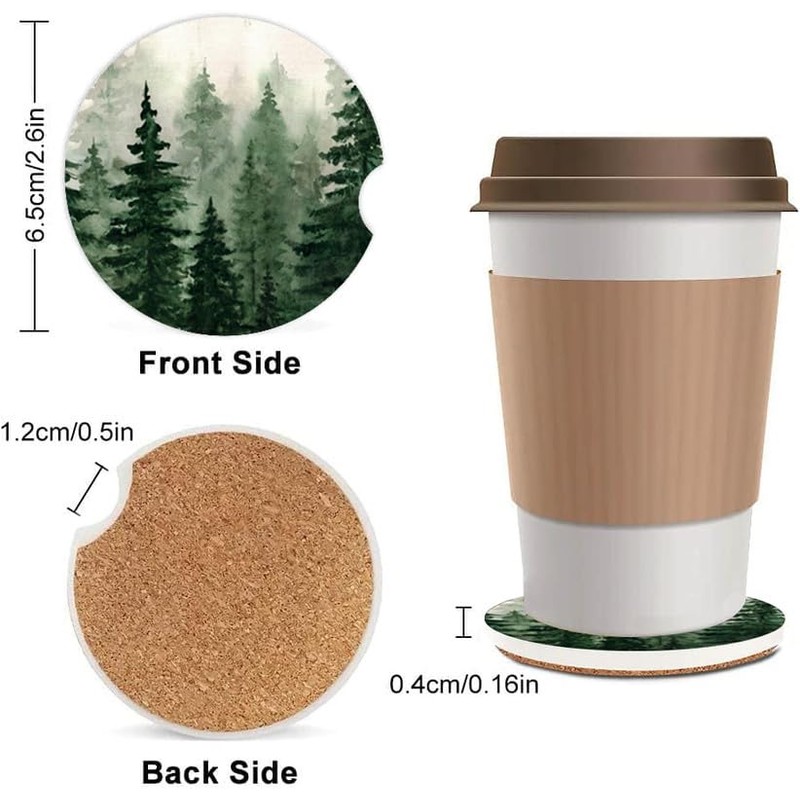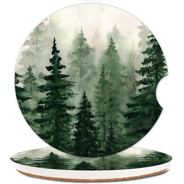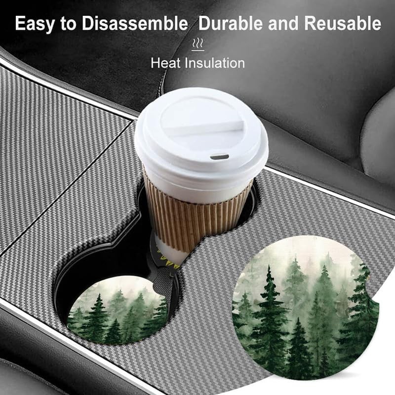 Absorbent Cup Holders Car Coasters,2 Pack Ceramic Stone Drinks Coaster Set for Women Man 2.56"(Green Mountain)