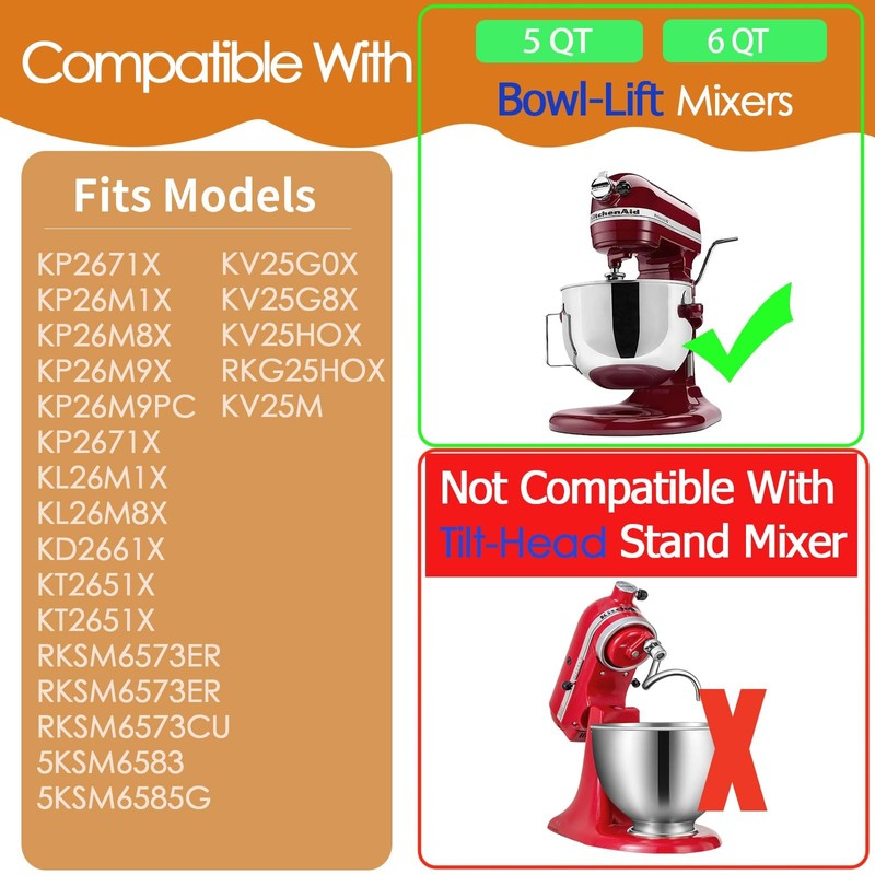 - 【Compatible】Para tazones mezcladores de pie de 6 cuartos de galón: KV25G0X, KV25G8X, KV25H0X, KP26M1X, KP26M8X, KL26M8X, KP2671X, KT2651X, KD2661X, KB26G1X.