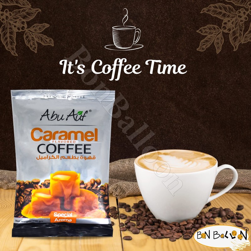 Item Description : Abu Auf Abuauf Oriental Original Turkish Coffee Cafe Arabic Arabian Arabica Premium Ground Caramel Flavore Coffee ( Caramel Flavor Coffee 3.52 oz / 100 gm ) ابو عوف قهوة بطعم الكراميل