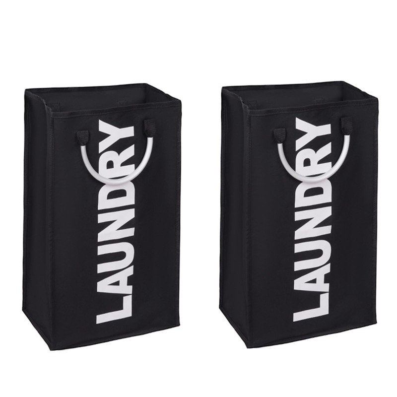 Abuzhen 2-Pack Laundry Basket, Durable Handles for Easy Carry, Collapsible Cloth Baskets, Hampers for College Dorms, Foldable Fabric Hamper Bags, Black