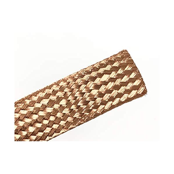 AC/DC WIRE AND SUPPLY Bare Copper Flat Braid Ground Strap Grounding 3/8" Width (15 FT)