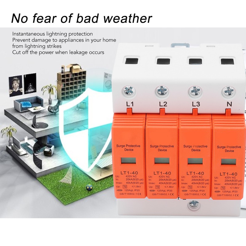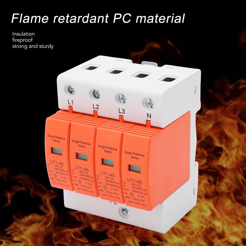 AC Surge Protector Quick Response 36mm Rail Installation 4P Surge Protective Device 20‑40KA 420V