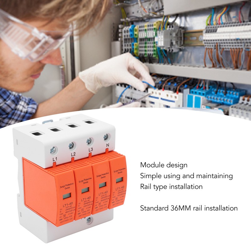AC Surge Protector Quick Response 36mm Rail Installation 4P Surge Protective ...