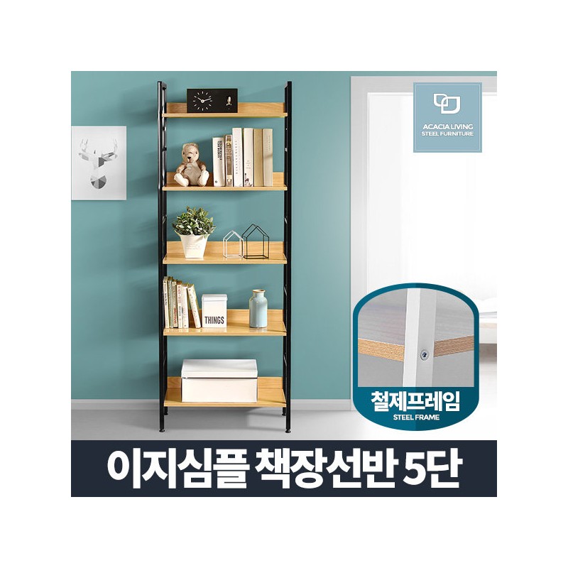 Acacia Living 5-tier bookshelf/living room front steel DIY office interior decoration cabinet, Easy Simple bookshelf 5-tier black / 아카시아리빙 책장선반 5단/거실 전면 철제 DIY 사무실 인테리어 장식장, 이지심플 책장선반 5단 블랙