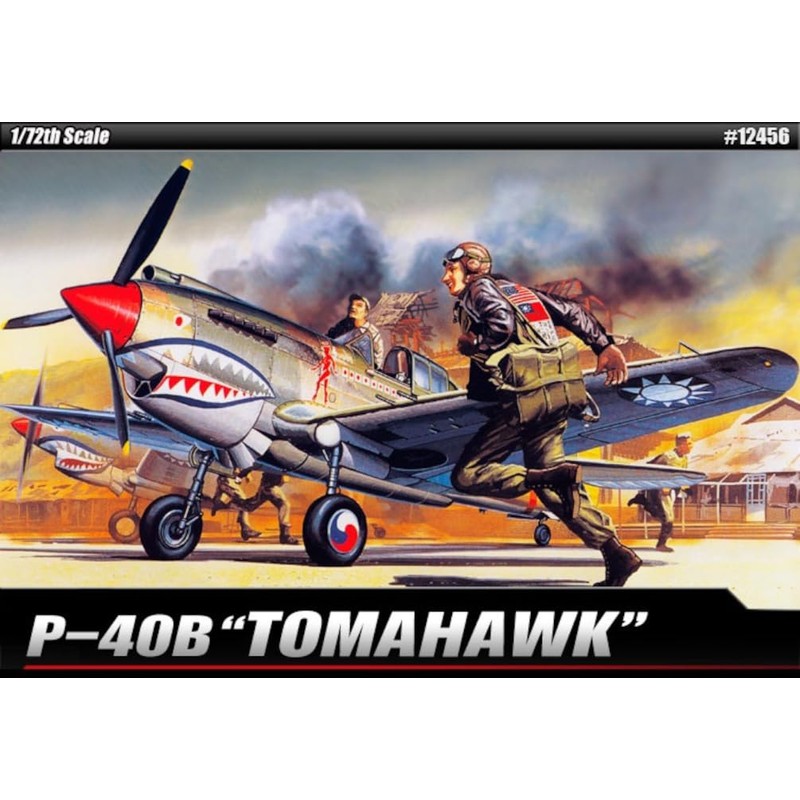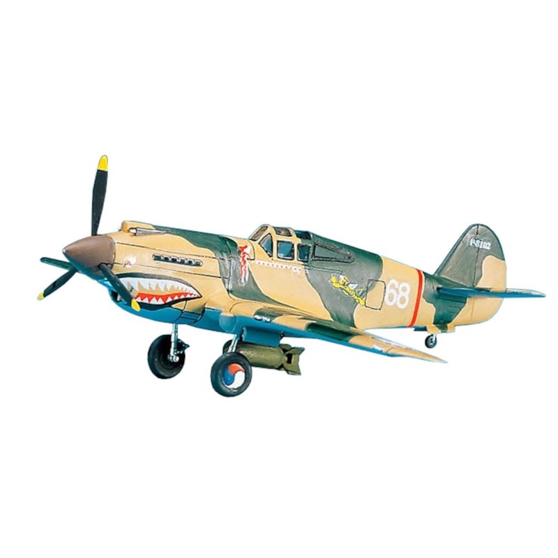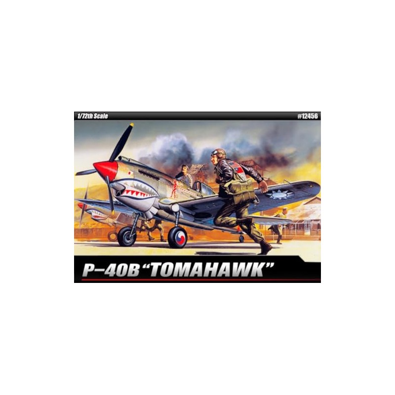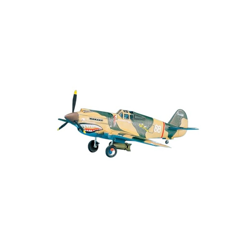 This is an Academy 1/72 scale plastic model kit. When the requirements for the P-40 were formulated, no prospect of high-altitude enemy attack against the U.S.A was envisaged, so that coastal defence and ground attack were the main tasks indicated. Low-altitude flying qualities and rugged construction therefore received priority, and, in fact, the P-40 was subsequently to prove itself an excellent ground-attack weapon. But at the time of the Japanese attack on pearl Harbour this fighter was already approaching obsolescence, despite having been in production for less than two years. Nevertheless, between 1940 and 1944, when acceptances were terminated, a total of 13,738 P-40 fighters were delivered to the U.S.A.A.F., the peak number in service being 2,499 in April 1944. The P-40 was a relatively clean design, and was unusual for its time in having a fully retractable tail-wheel. One hundred and ninety-seven P-40s were built in 1939-40 for the U.S.A.A.F., and many more were sold abroad to Britain and France. In the R.A.F., which service purchased 140 outright, it was knows as the Tomahawk MK.I, IA, and IB. This "C" model carries the markings of the plane flown by Charles Older, of the 3rd Squadron, "Hell's Angels", AVG, based at Kunming, China in the spring of 1942. The 1/72 model kit contains 46 components, fully engraved panel lines, weapons, and the landing gear can be optionally modeled up or down.