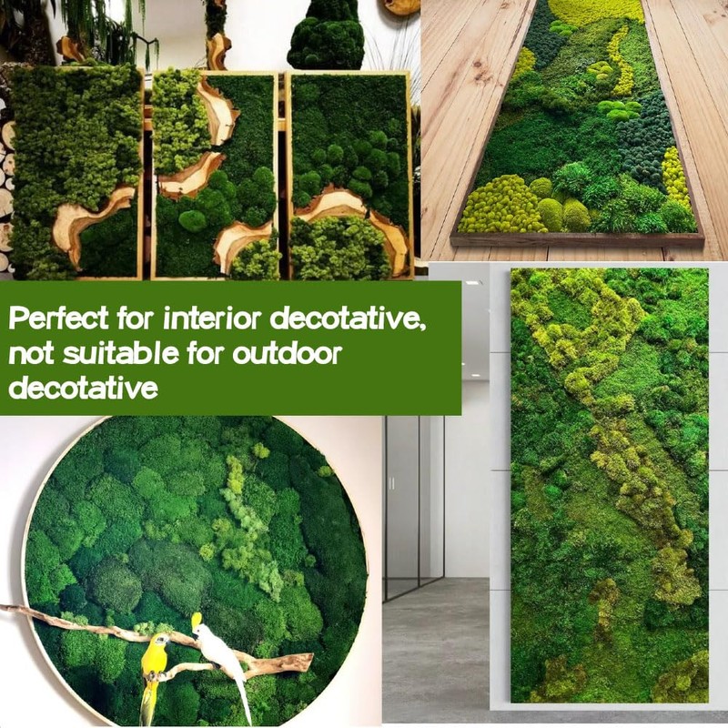 - 【PACKAGE】 -- A box of 17.6oz (1.1lb) of Preserved moss.Covering About 1.5 ft².The area will vary slightly depending on how intensively the moss is used.