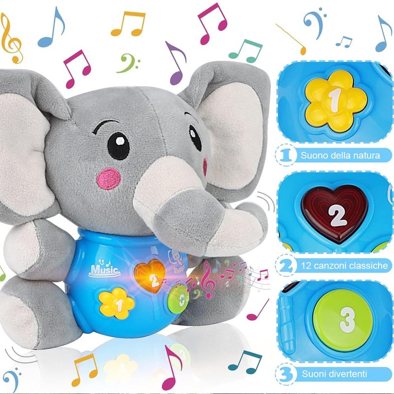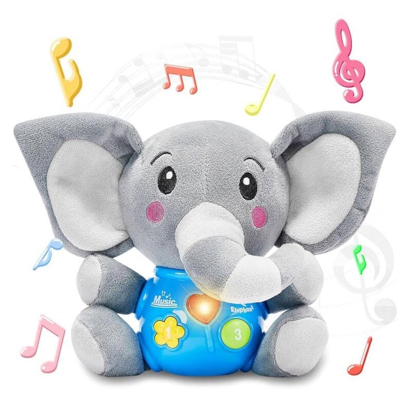 Acaino Plush Elephant with Music and Light, Music Games for Children, Sensory Toy for Development, Gift for Newborn 0-12 Months (Elephant)