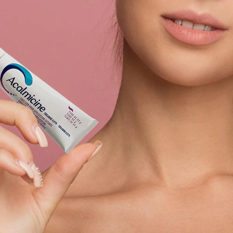 Heal, soothe, and protect your skin with Acalmicine Emulsion, a French pharmacy-grade solution designed for effective wound care and sunburn relief. Its active ingredient, Trolamine 0.67%, promotes skin regeneration, reduces discomfort, and deeply hydrates irritated or damaged skin.