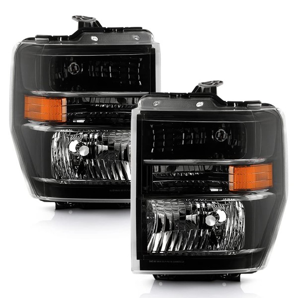 ACANII - For 2008-2014 Ford E150 E250 E350 All Models Black Housing Headlights Headlamps Pair Set Replacement Left+Right
