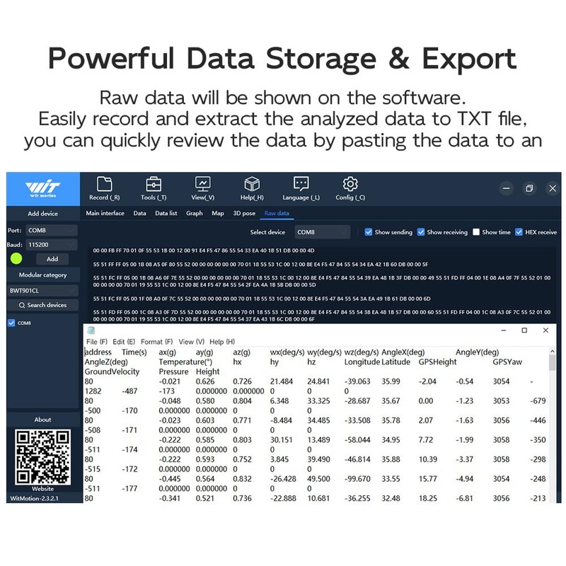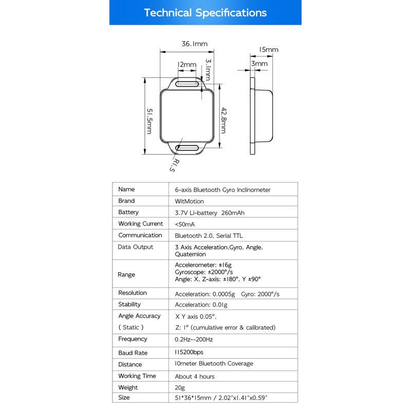 - High Performance: Solid data output: 3-axis XYZ (pitch roll yaw) acceleration + gyro + angle. You can choose between measurement range and output rate (0.2-100Hz). Video link: www.youtube.com/c/WITMOTION/search? query=BWT61CL