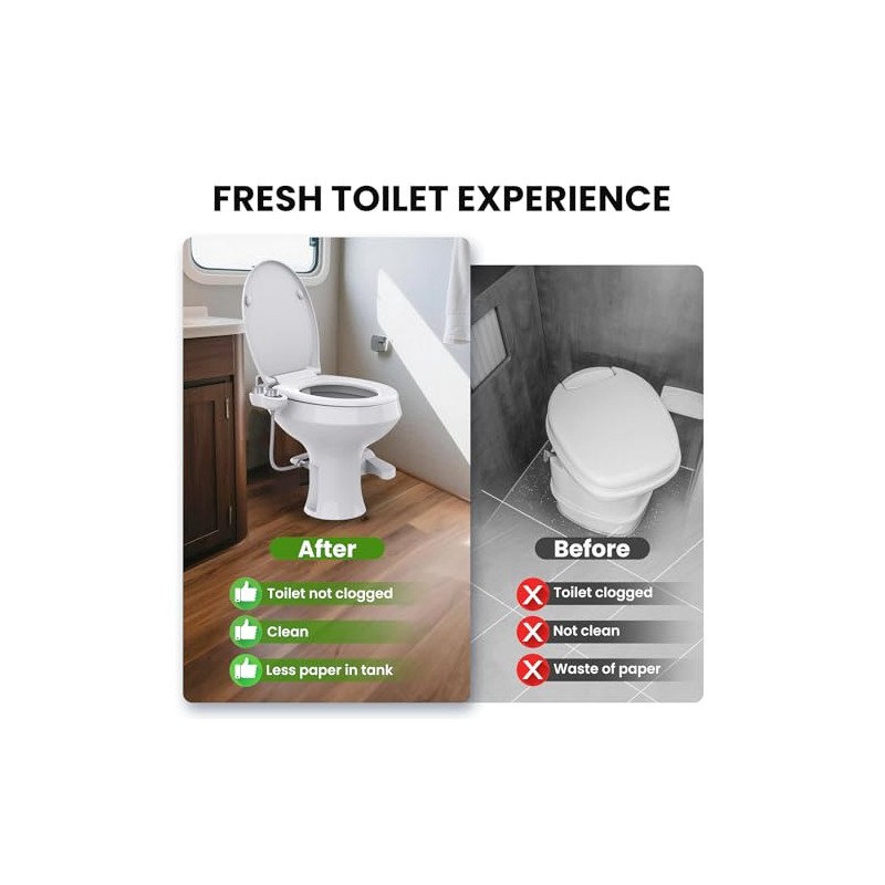 • 【Mejora el inodoro Yoiur RV】 Te permite tener una maravillosa experiencia de inodoro como en casa en tu RV con el accesorio de bidé para inodoro. Ahorra más papel, salva el planeta y di hola a la frescura.