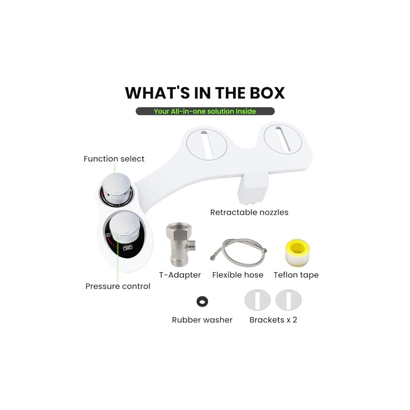 • Instalación rápida y fácil: mira el video de instalación para aprender lo fácil que es instalar el bidé en tu inodoro RV en minutos con todos los accesorios necesarios como manguera de agua, adaptador en T (accesorio de línea de flotación de tamaño especial para RV), tornillos extendidos y cinta de teflón. **Asegúrate de que tu asiento de inodoro esté fijo con tornillos y se pueda quitar**