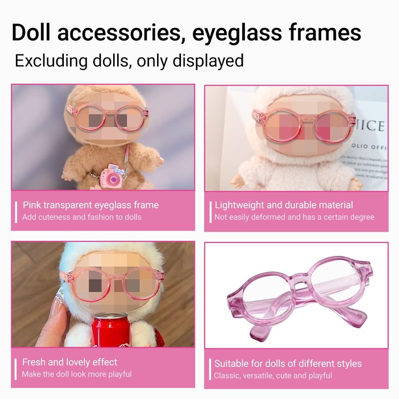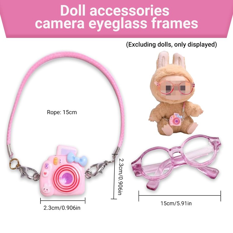 Accessory for 17 cm La-bu Plush, Cuddly Toy Clothing Outfit Only Clothing Accessory for 17 cm La-bu Mini Pink Camera + Glasses with Transparent Pink Frame (M3)