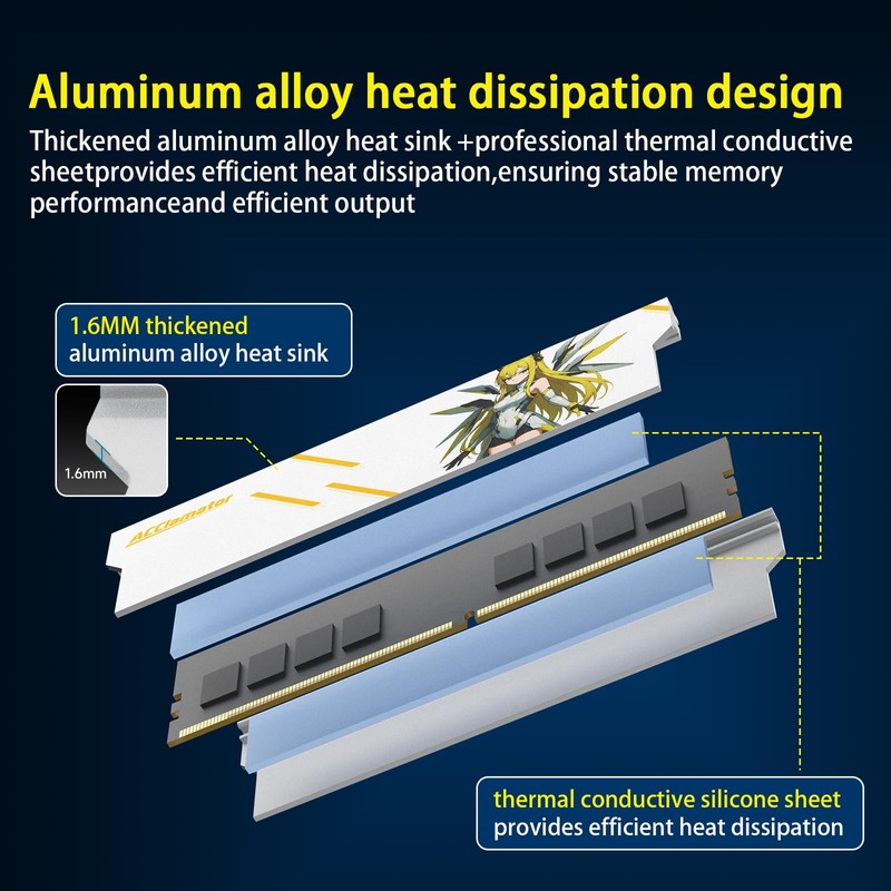 • 【Thickened aluminum heat sink design】The new generation of stylish thickened aluminum heat sink provides ram with excellent heat dissipation and management, optimizing heat dissipation performance. Effectively reduce the temperature of DDR5 ram in high-load games or daily tasks, maintaining stable performance, faster frequency output and longer service life.