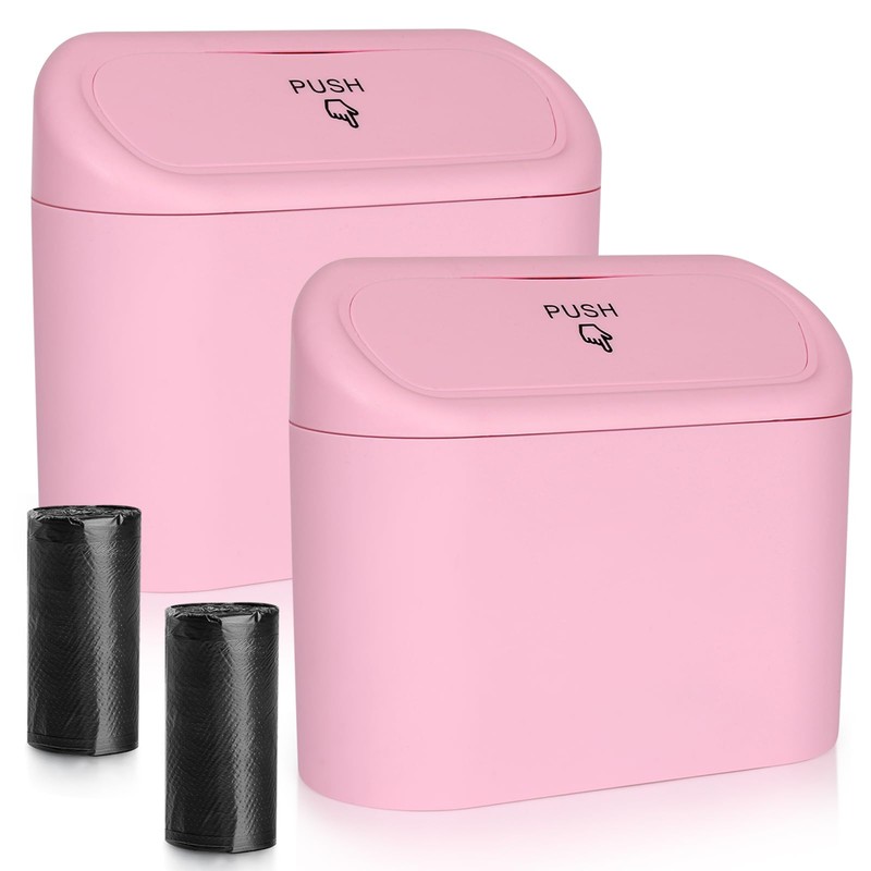 Accmor Car Trash Can with Lid, 2 Pack Pink Mini Vehicle Trash Bin Dustbin Garbage Organizer Holder with Trash Bag, Small Hanging Leakproof Auto Storage Bag Container for Car SUV Home Office