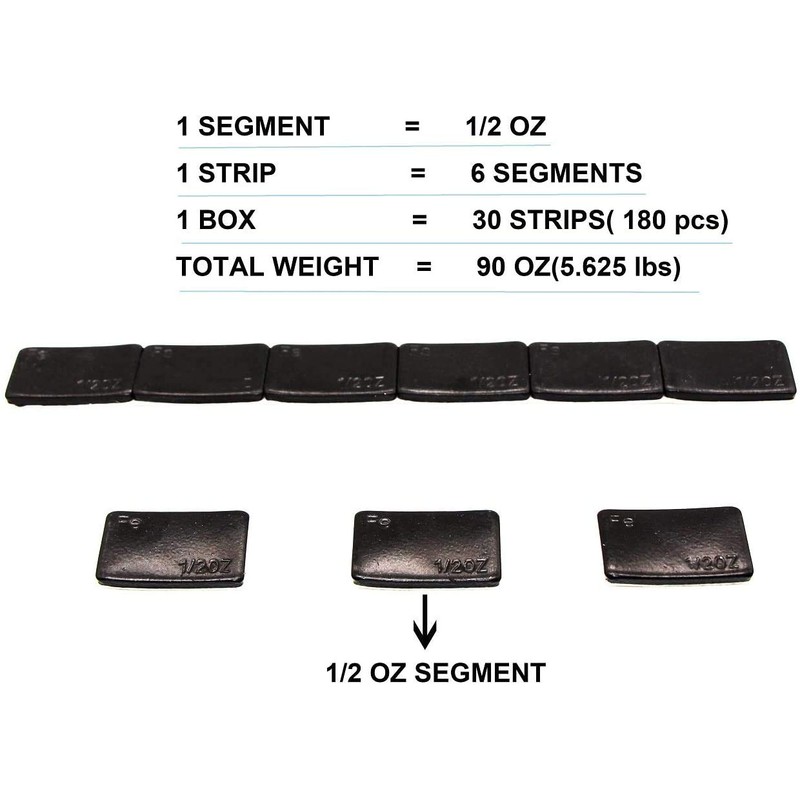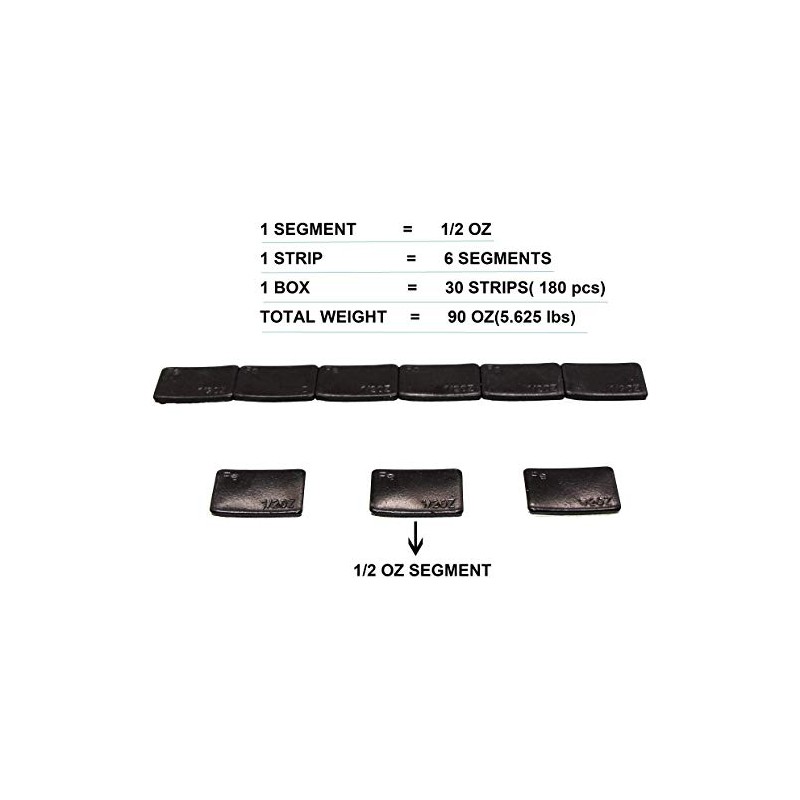 - ✔️ Specification: Black Weights, 48 Pieces of 1/2 (0.5 oz) stick-on wheel weight balance with strong White adhesive tape
