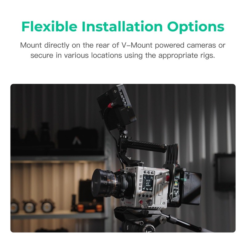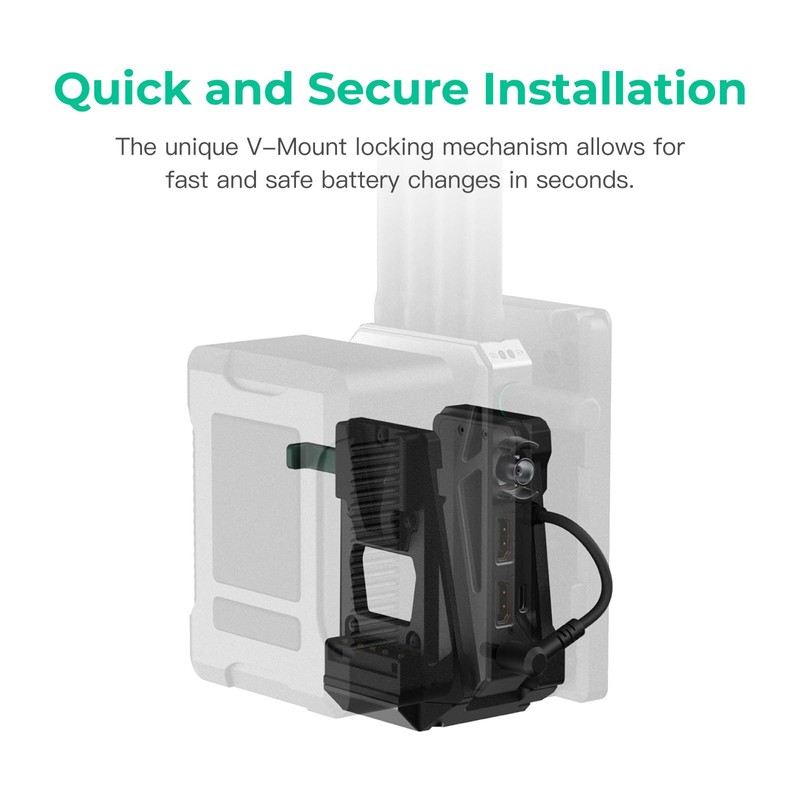 - compatible with V-Mount batteries, ensuring continuous power and seamless connectivity with your camera system. It guarantees seamless operation and a reliable power source for your CineView Master 4K/2 SDI